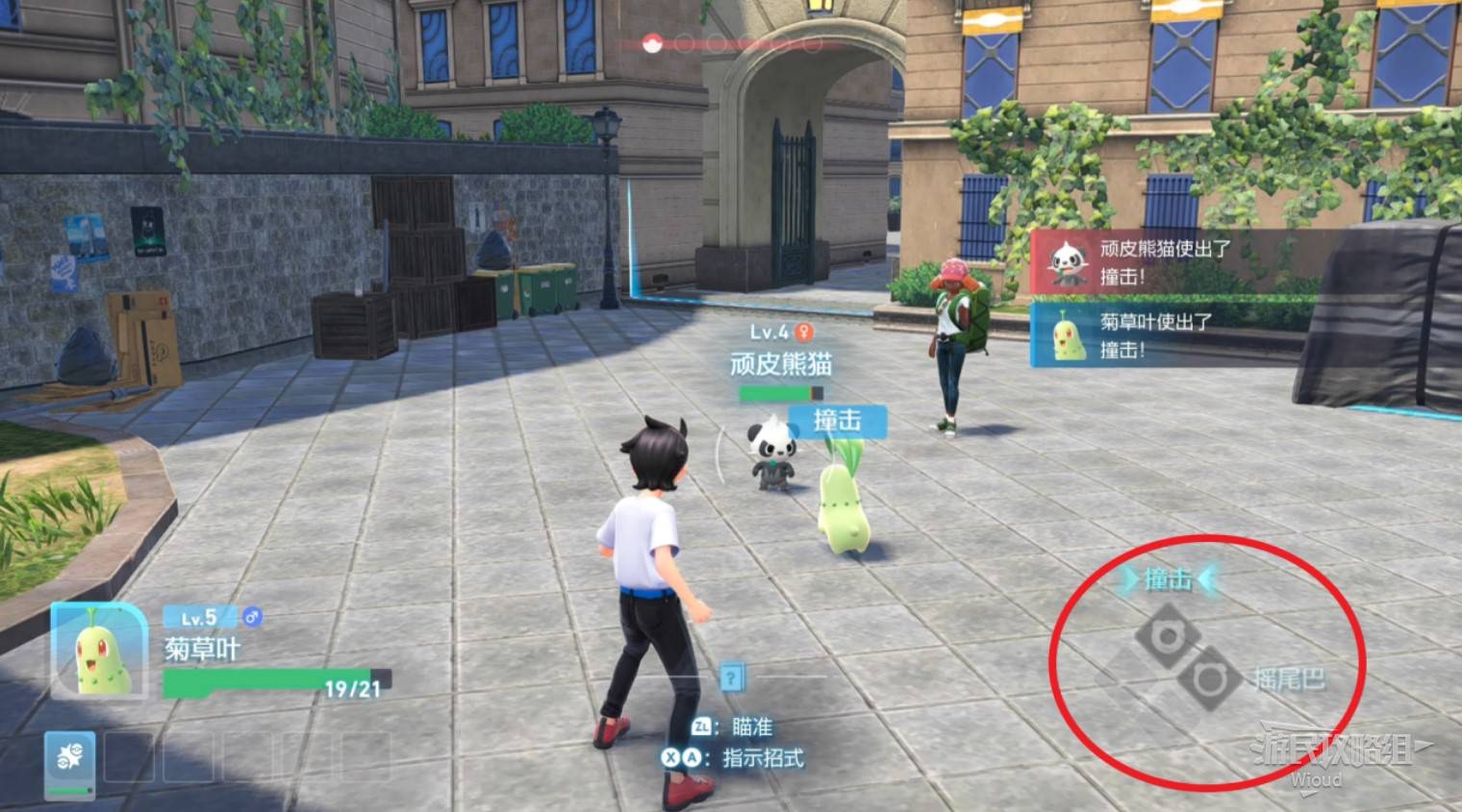 追上宝可梦后,挑选本代御三家进行战斗。在战斗中,按住【ZL】键可以锁定敌对宝可梦,而使用【X】【T】【B】【A】键则可以施展宝可梦技能。