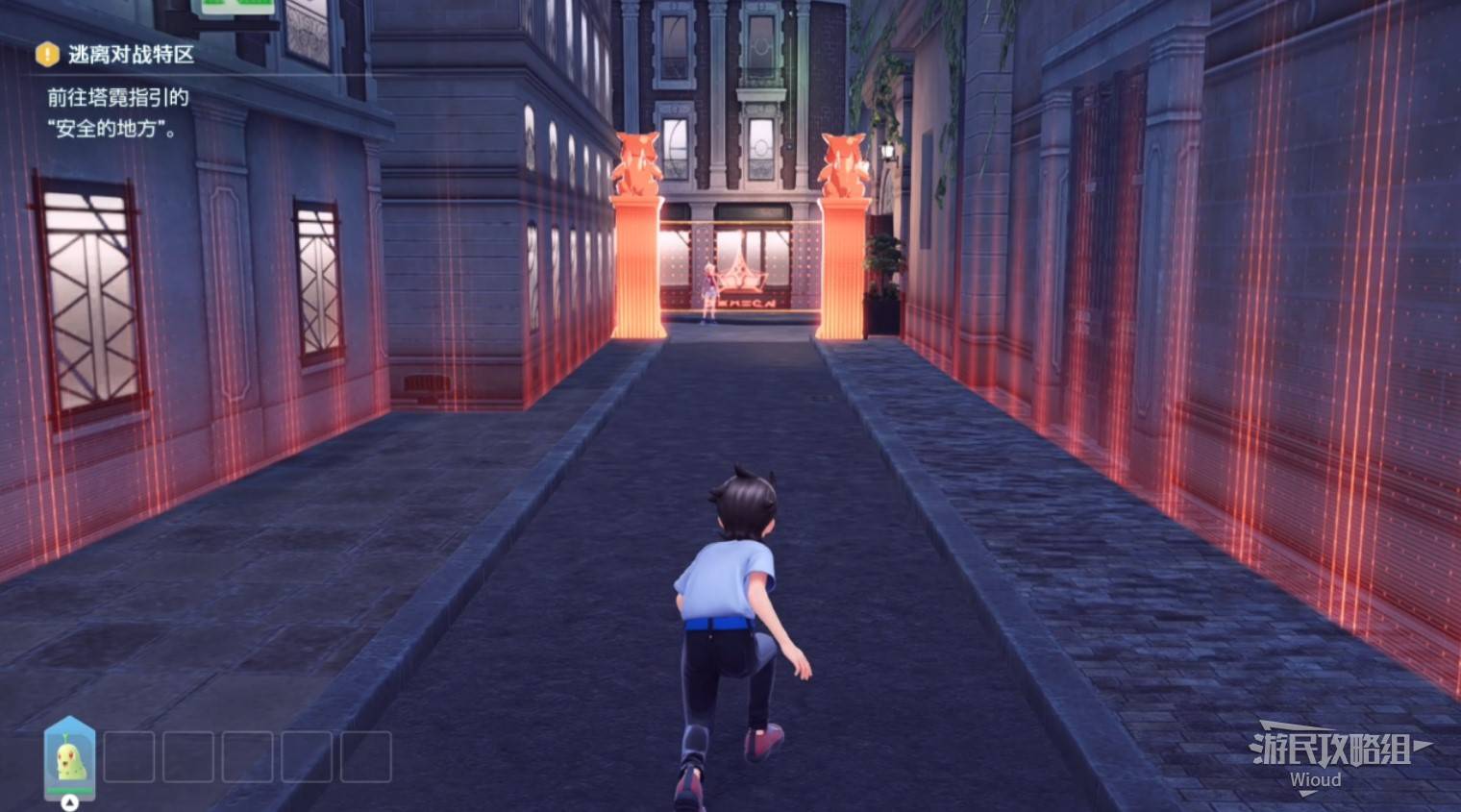 跟随剧情,玩家需要与塔霓一起击败路上的女服务生,完成剧情后,从尽头的红色门离开对战特区,右转进入旅馆。